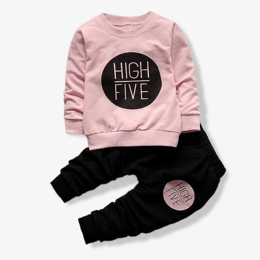 2-piece Toddler Boy/Girl Letter Print Pullover and Black Pants Set