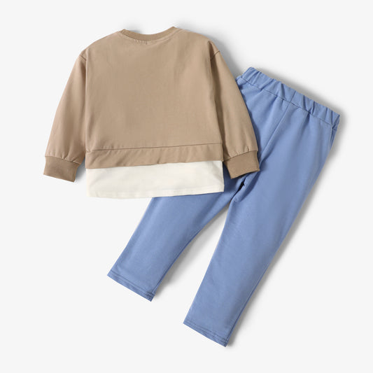 2-piece Toddler Girl/Boy Letter Print Faux-two Pullover and Patchwork Pants Set