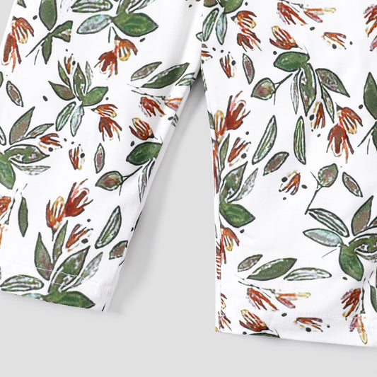 2pcs Baby Ruffle Long-sleeve Bowknot Top and All Over Leaves Print Trousers Set